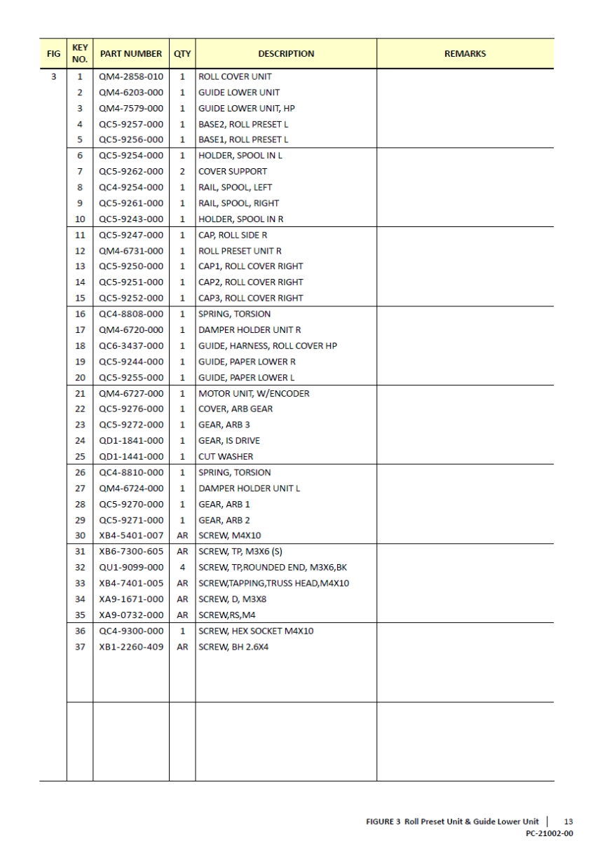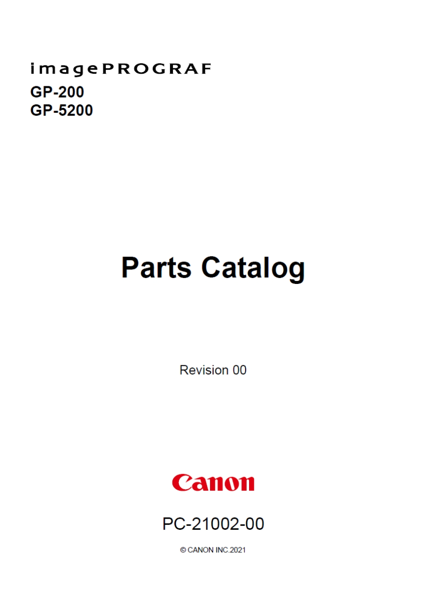 Manual Name Canon imagePROGRAF GP-200 GP-5200 Parts Manual