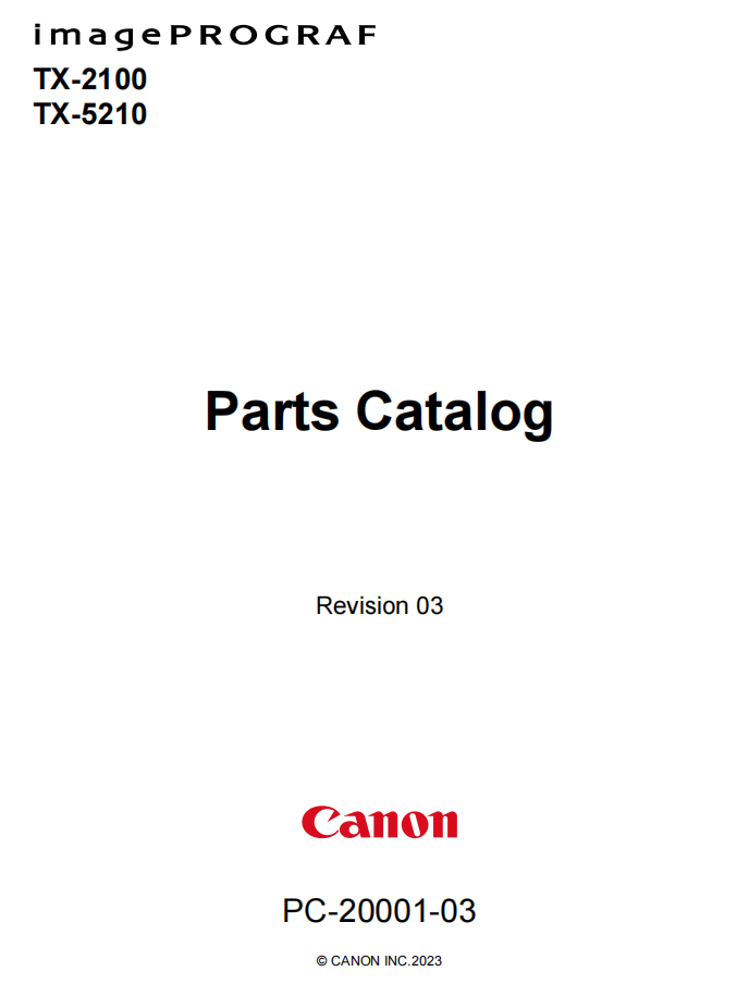 | Manual Name | Canon imagePROGRAF TX-2100 TX-5210 Parts Catalog |