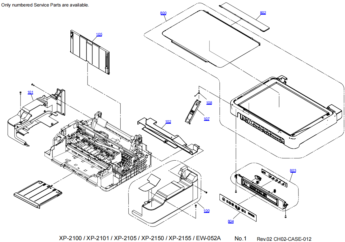 Parts Manual for EPSON XP-2100 XP-2101 XP-2105 XP-2150 XP-2155 EW-052A