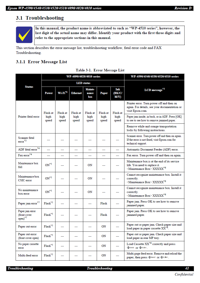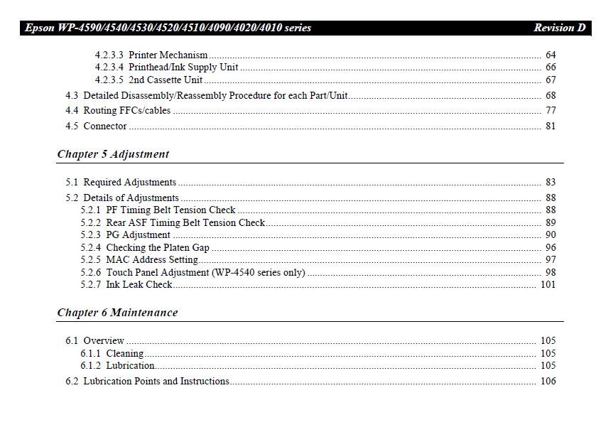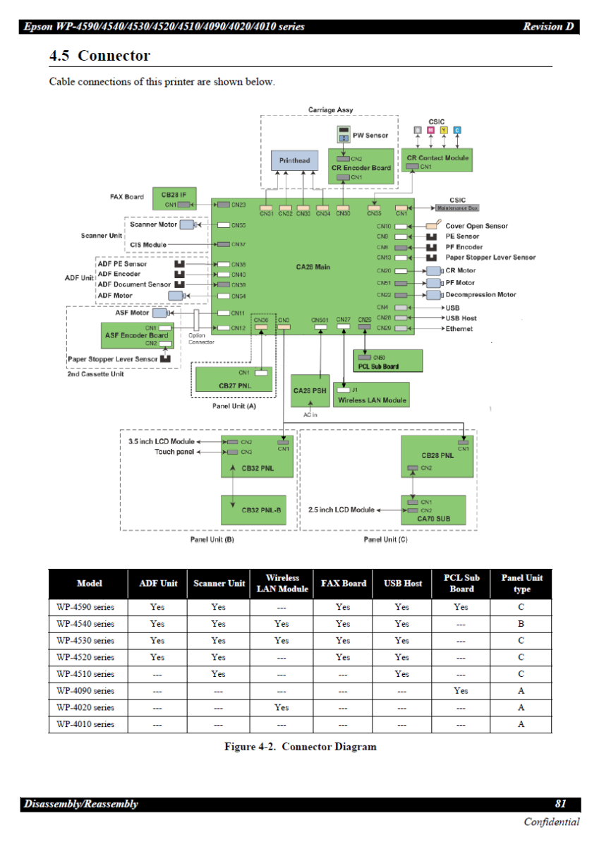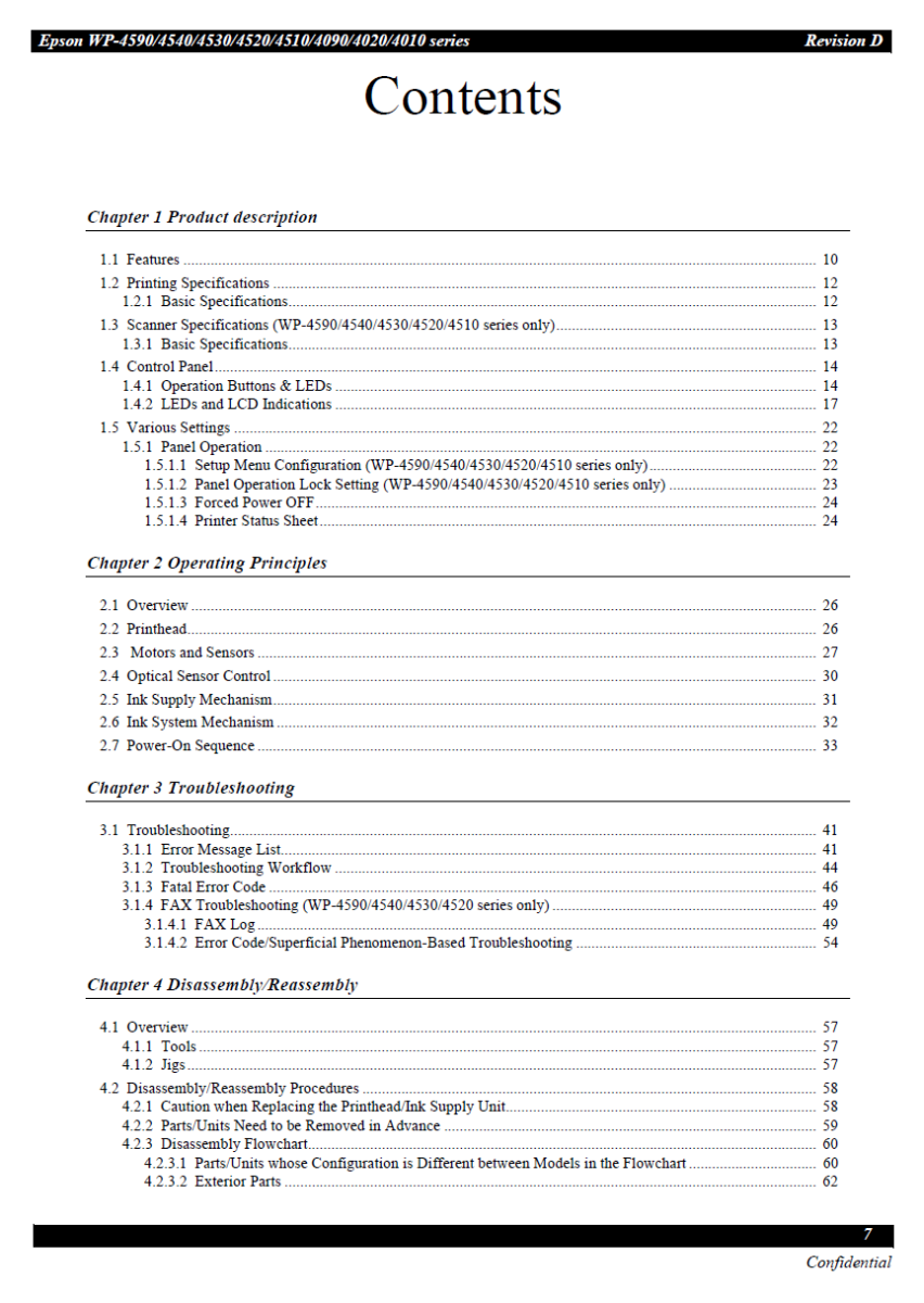 Service Manual for EPSON WorkForce WP-4590 4540 4530 4520 4510 4090 4020 4010